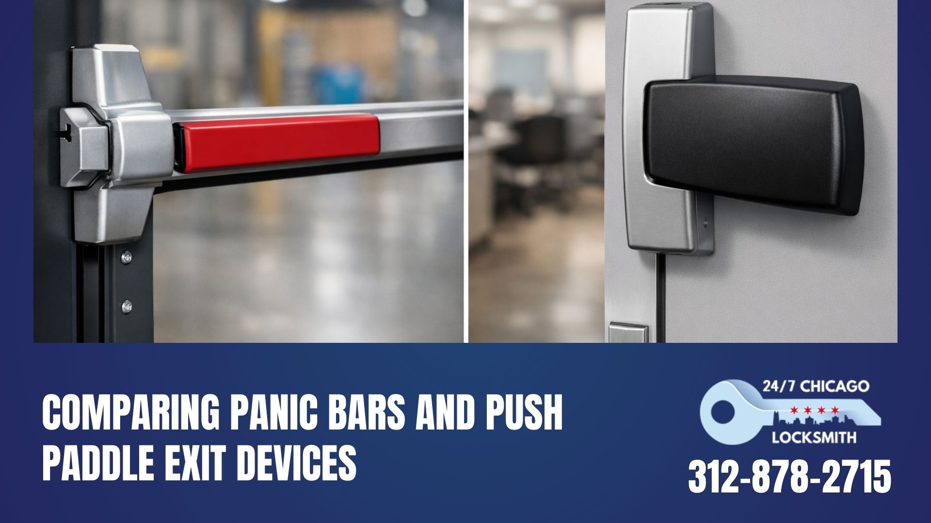 When it comes to commercial building safety in Chicago, choosing the right exit device means way more than just meeting a code requirement. Panic bars and push paddle exit devices both play a critical role in emergency egress, security, and daily usability. Business owners, property managers, and facility operators often struggle to understand which option best fits their space, since each device has unique advantages depending on traffic flow, building use, and safety regulations. In this blog entry, our professional Chicago door hardware installation team will detail the main differences between panic bars and push paddle exit devices.
